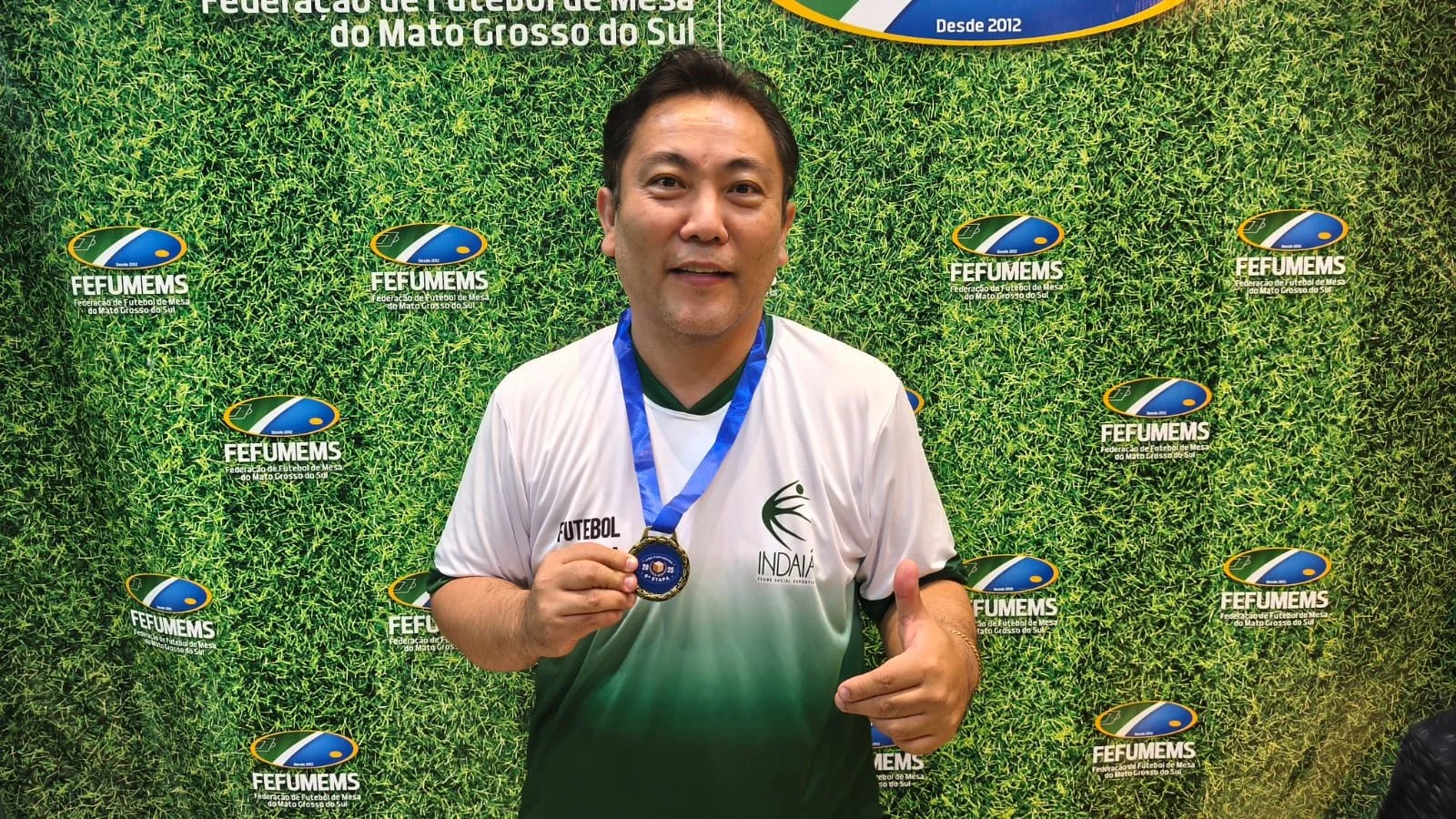 O atleta do Indaiá, Marcus Ohya ficou em 3º lugar na etapa Liga Pantaneira de Futebol de Mesa. (Foto:Divulgação)